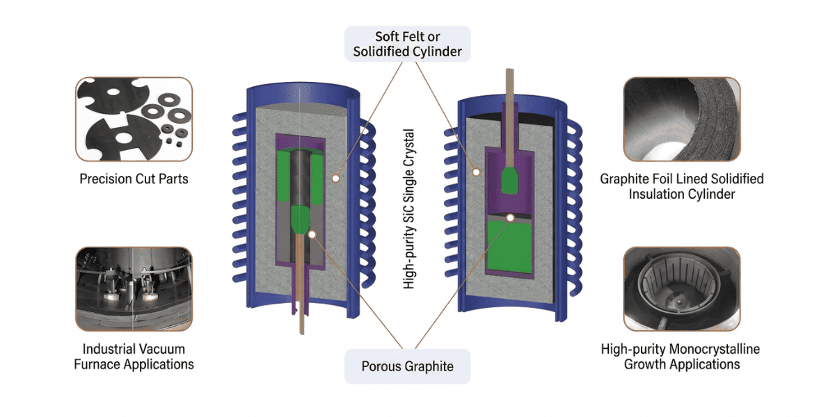 Výroba polovodičov:Toto je kľúčová izolačná vrstva pre zostavy pecí na rast monokryštalického kremíka a kryštálov SiC.